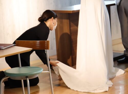 8/6(日)のオープンキャンパスの特別イベント、模擬挙式の準備が着々と進められています。
