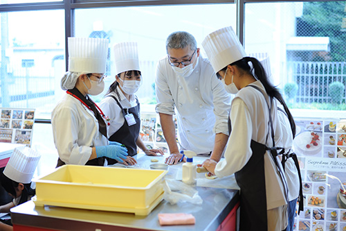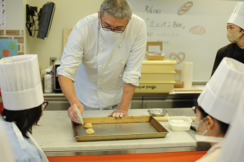 パティシエ・ベーカリー学科では年に1度の製パン体験が!現役オーナーの渡邊先生が担当です。