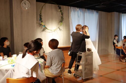 メインイベントの人前式はもちろん、プロのヘアメイクさんによるメイクの実演、学生たちがモデルを務めるドレスショーなどなど、
