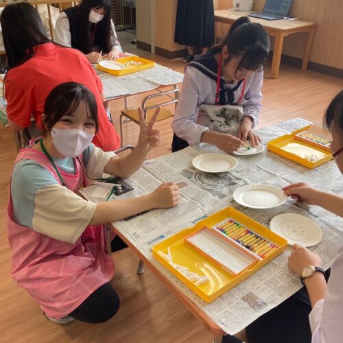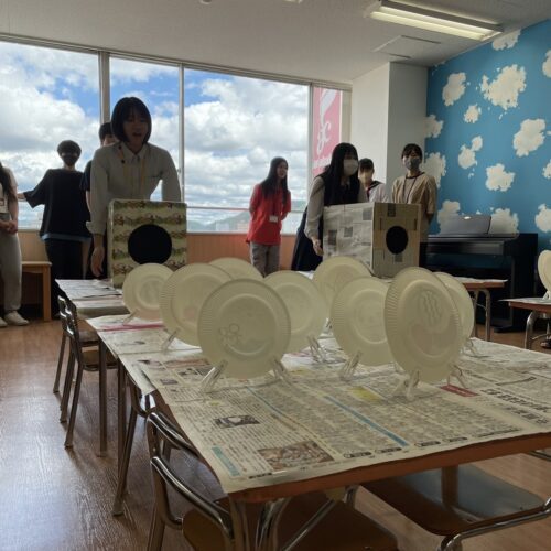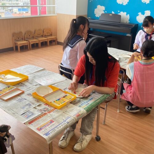 まずは、みんなで的の作成!