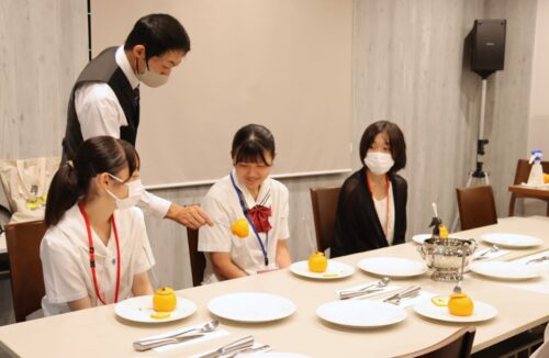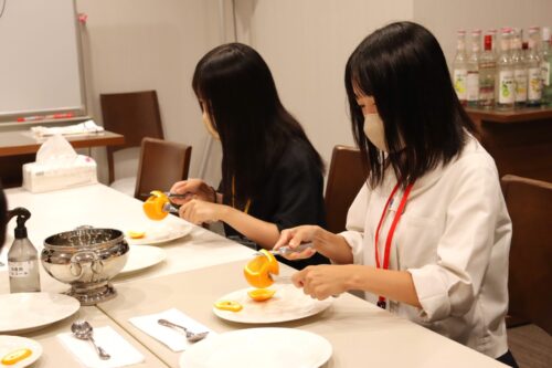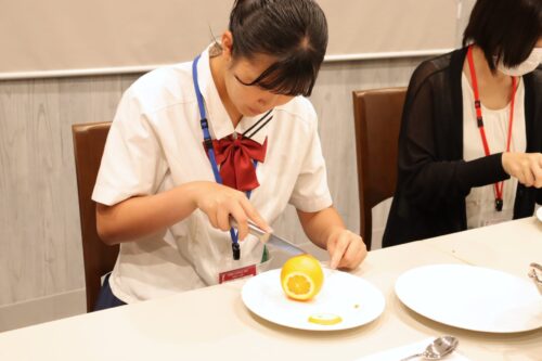 本日のオープンキャンパスに参加してくださった方はフルーツカッティングの体験は初めて!