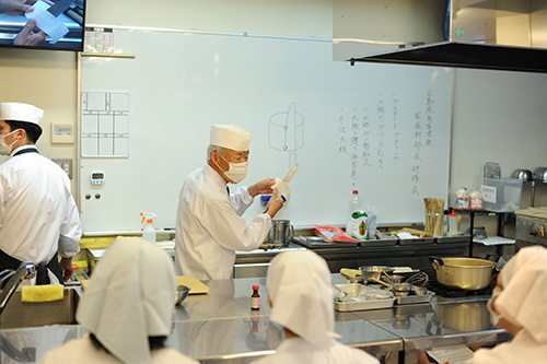 食物研究会では、当校日本料理専任講師である生田先生が技術指導。