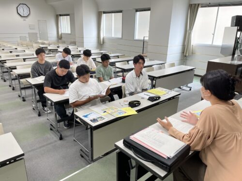 公務員系学科では、現役公務員の方をお招きして学生達を対象とした「業務説明会」や「懇話会」を実施しています。