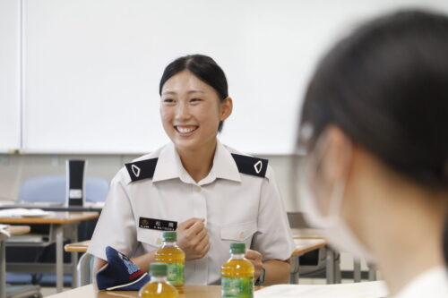 卒業生でもある松岡自衛官。とっても気さくで話しやすい!