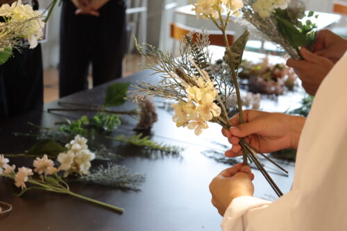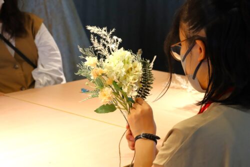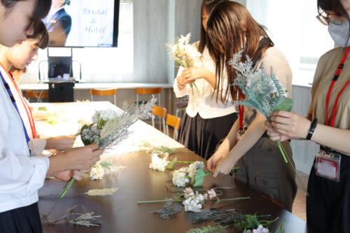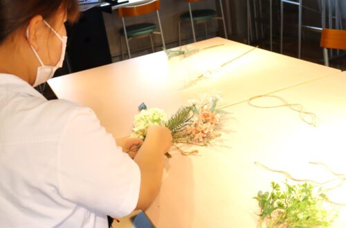 本日のオープンキャンパスはミニブーケを制作しました。