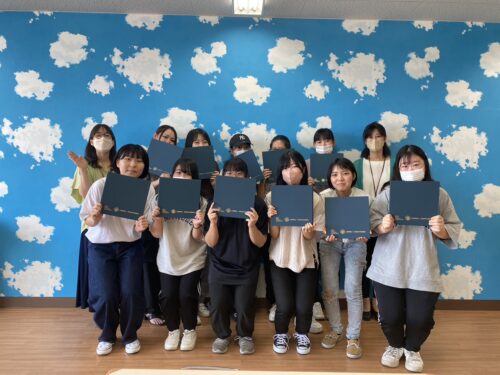 こども福祉教育学科(現:こども未来教育学科)は先日受けた、幼児体育指導者検定の合格証書が届いたので全員で記念写真!
