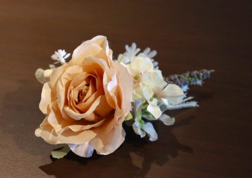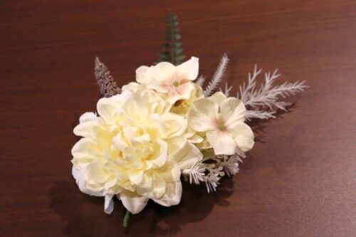 ドレスやタキシードの胸元にはもちろん、髪飾りやバッグに付けて普段使いもできちゃうコサージュ。