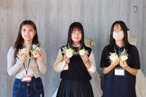 何度もオープンキャンパスに参加してくれている高校生の方は慣れた手つきでコサージュを作っていきます。