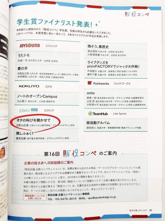 第15回「販促会議 企画コンペティション」において本校グラフィックデザイン学科の日野山さんが