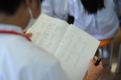配布されたフランス語のレシピに書き込みつつ、