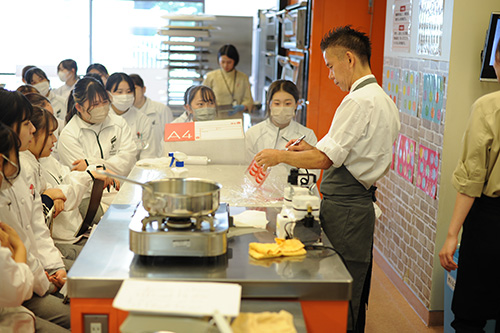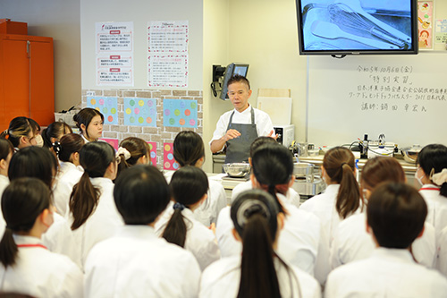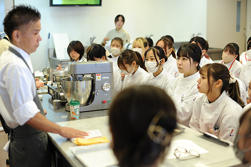 2019年以降、コロナ禍で来校が叶わなかった日本洋菓子協会連合会公認技術指導委員の鍋田シェフをお招きしての特別授業を実施いたしました!