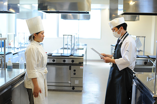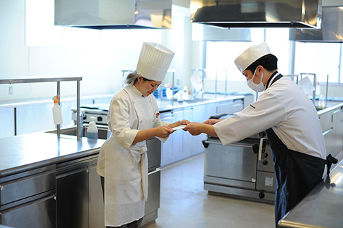 調理師養成施設調理技術コンクール(以下グルメピック)の校内予選を行い、見事学校代表に選ばれたTさんへ休憩時間に伝達式を行いました!
