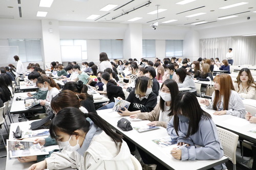 ホールは動物看護師やトリマーをめざす学生たちでいっぱい。初めての講義で学生たちも楽しみにしていました。