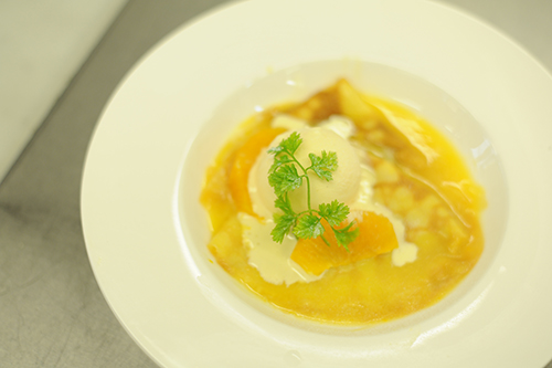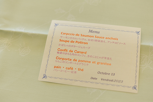 今日はここで終わり・・・ではなくて、平行して実施していた高度調理学科2年生による教職員対象のレストラン実習。昨日仕込みを行い、本日西洋料理の提供となりました。メニューは全4品+ドリンク。