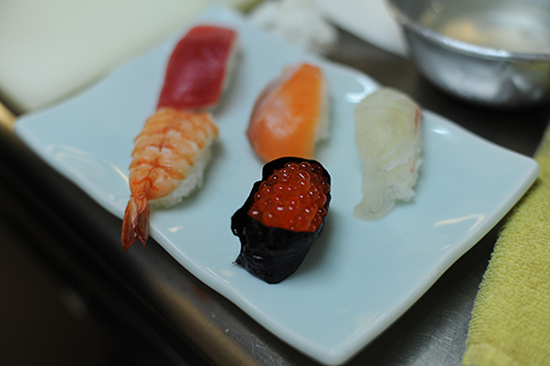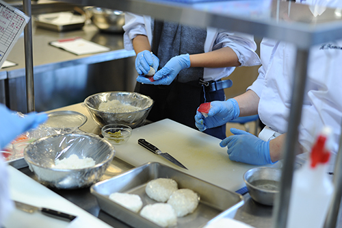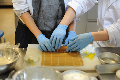 専門学校説明と、体験授業の内容でまずは調理系から。専門調理師免許を持っている山本先生の握り寿司体験。
