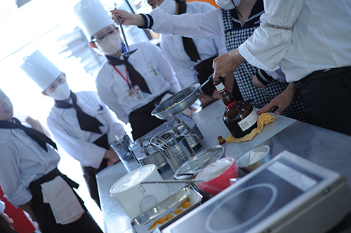 見えにくいですが、フランベも体験!