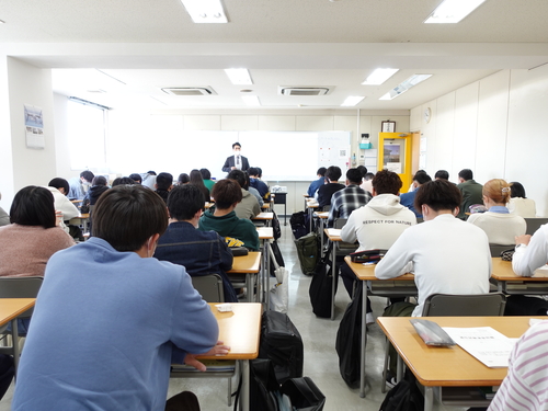 現役消防官の先輩による業務説明会でも職務へ理解をしっかり深めていました