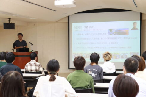 大西氏はアメリカのマイクロソフト・コーポレーションで多くの企業に対してAI分野でのスキル・トランスファーのスペシャリストとして関わられており、カリフォルニア州立工科大学をはじめ、国内外の多くの大学、研究機関で講演をされています。今回は本イベントのために来日され、香川県の姉妹校、専門学校穴吹コンピュータカレッジにてご講演いただき、本校はオンラインで学生約100名と教職員が参加いたしました。