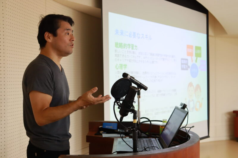 講演は第1部(学生向け)と第2部(教育関係者向け)を実施いただき、学生には大変分かりやすい説明で「未来に必要なスキル」「専門技術以外で必要なスキル」「付加価値となるスキルと知識」など、未来で活躍できる人材像について熱く語っていただきました。