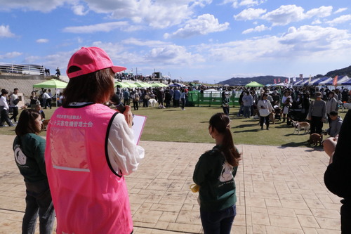 愛犬連れの方には鑑札やワクチン接種証明書の確認など、お一人お一人に対して丁寧に対応していました。