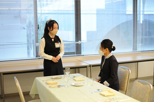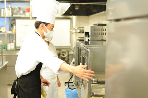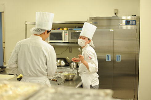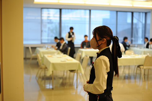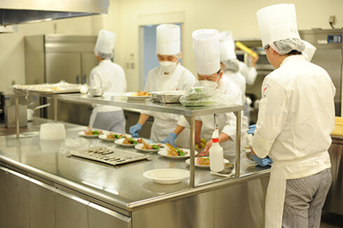 調理技術や知識はもちろん、現場に出る前にサービスとの連携もシミュレーションできる環境が当校の特徴。