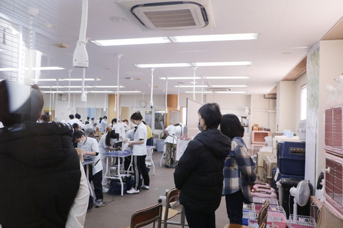保護者の皆様は、学生たちの手つきや作業の様子を間近で見学。特別な授業ではなく、普段通りの一日を共有しました。