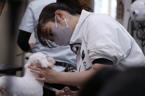 グルーミング実習では、学生のすぐそばで見守る保護者さんも多く、学生達もいつも以上に張り切った様子で作業していて、微笑ましい光景でした。