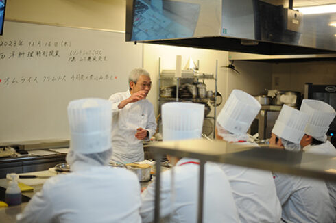 第一線で活躍されている料理人の方から、社会人1年目〜今までの歴史を聞けたり、テクニックを紹介いただけたり、これぞ上級学校の授業!といった感じの内容となりました。