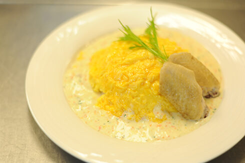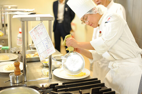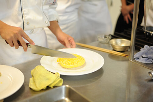 メインのオムレツも、チャレンジが大切。ファーストペンギンはT君(先生もInstagram用に撮影しています)キンチョー!