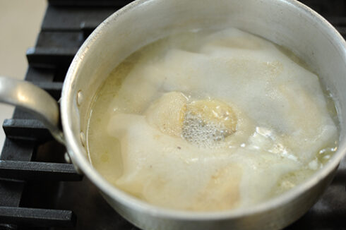 軽く焼いた後、落し蓋をして20分ほど煮込みます。