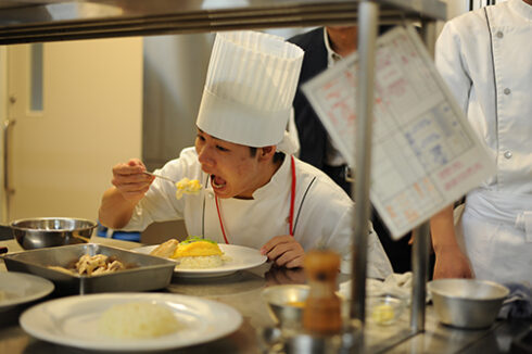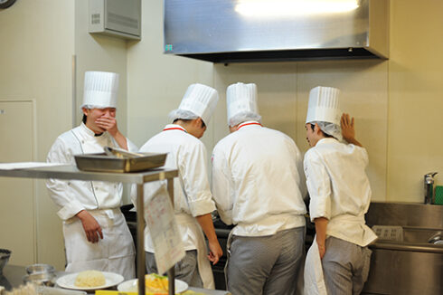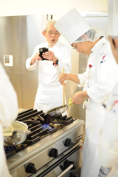 あまり見かけない風景ですが、シェフの指示のもと、様々な角度から録画することでしっかり復習するようにとの配慮。
