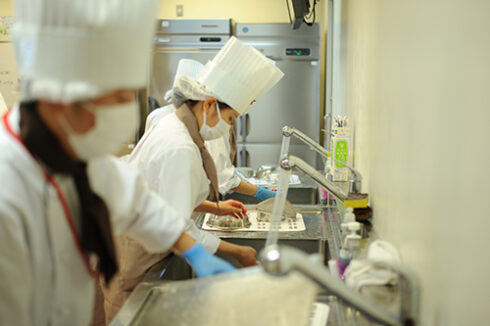 洗い物もしっかりやっています。製菓衛生師は衛生のプロですから。
