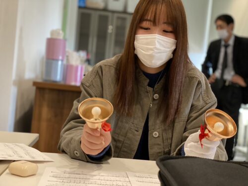 参加していただく皆さんに、心ばかりのおもてなしをということで、ハンドベル演奏を行います。