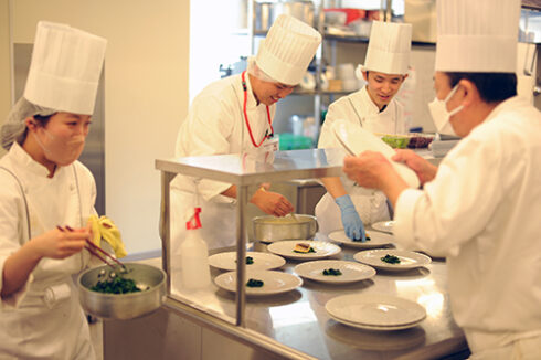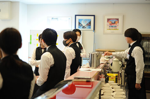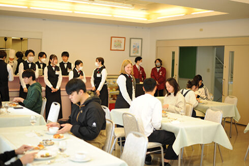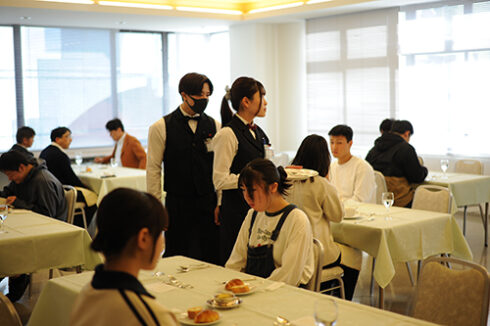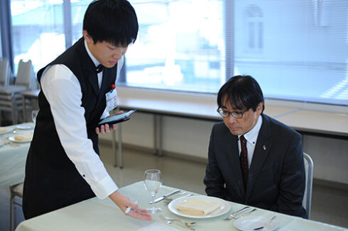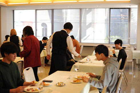 前回調理した学生が入れ替わり、今回はサービスを担当します。