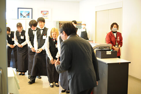 この日1組目のお客様が到着(職員)総出でお出迎えします!