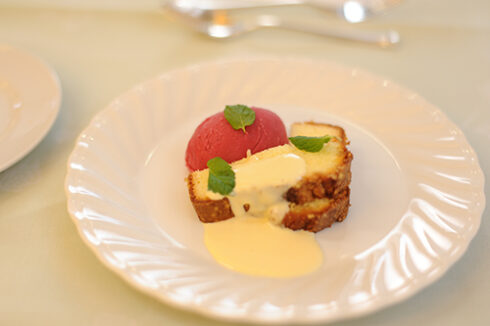 調理系ですが、デザートも作成(レモン風味のバターケーキとカシスのソルベ)