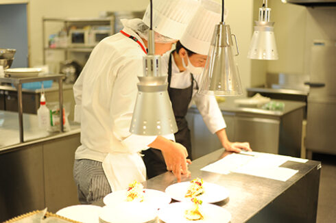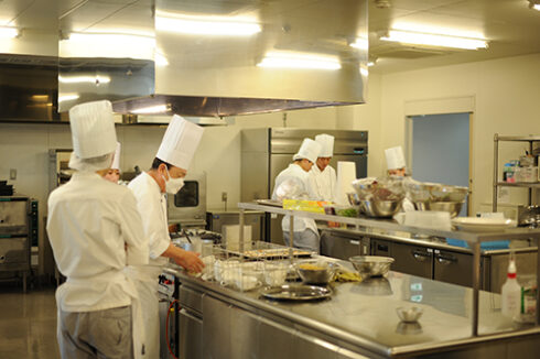実習室では西洋料理担当の大熊先生が指示を出していました!(現場の血が騒ぎます)