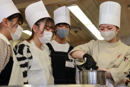 高度調理学科も、コロナ禍以前のように先輩と一緒に食べることができるようになり、アンケートには「先輩とたくさん話せてよかった!」「先輩と話せて授業のことが聞けた!」など、喜びのコメントもいただきました!