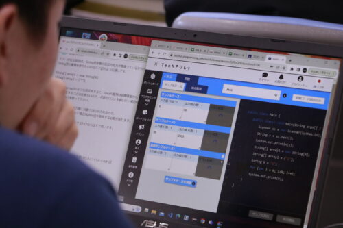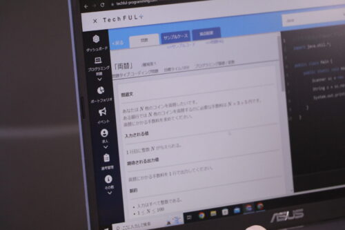 お題が出されてそのお題を解決するために、自分で考えたプログラミングを入力していきます。