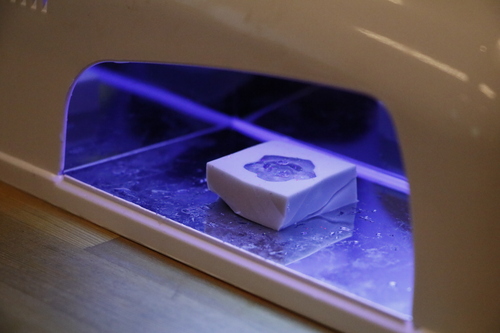 紫外線ランプで硬化させます。出来上がりが楽しみです!