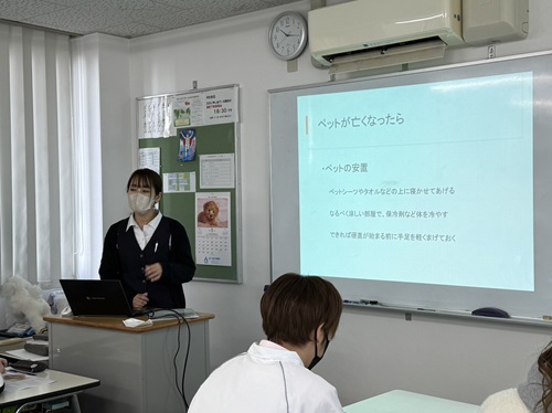 ペットを飼っている学生たちも多く、ペット火葬や葬儀の実態に触れ、将来の自分やペットとの別れに向けて心の準備をすることの大切さを実感したようです。