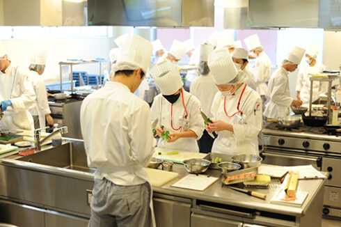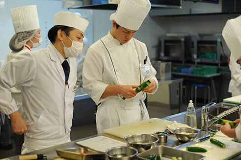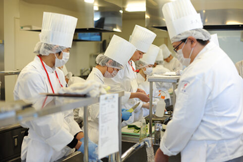 時間の関係で取材できず、急に最後の集合写真となってしまいました・・・。永井先生、お忙しい中お越しいただきありがとうございました!1年生も今日の経験と、味や食感を覚えつつ安心安全な食を提供できる調理師をめざして行きましょう!