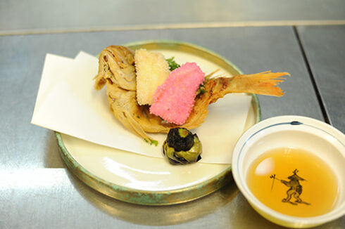 次は「小鯛三色揚げ」に。チダイをおろして行きます。