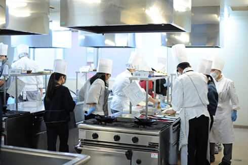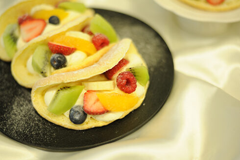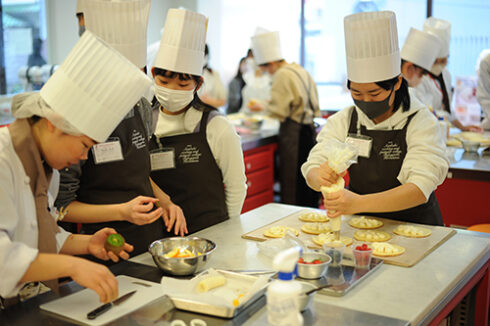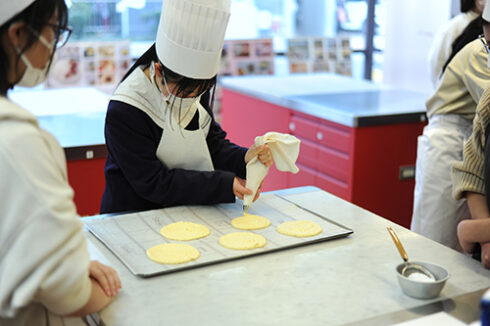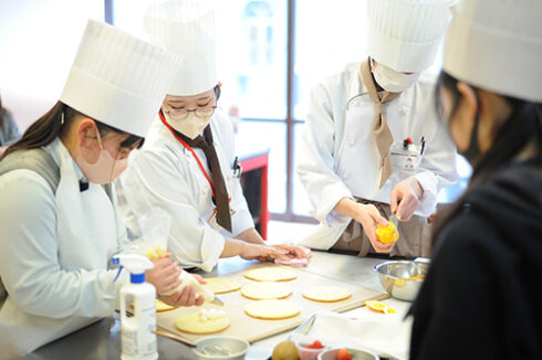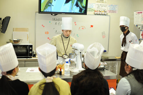 パティシエ・ベーカリー学科は人気メニューの「オムレットフリュイ」。2月といったらチョコレートでしょ!と思うかもしれませんが、そこは斜め上を行く当校、オムレットです。(3月のオーキャンでホワイトデー向けにチョコレートはやります)
