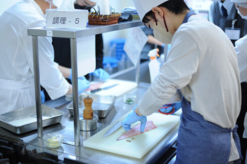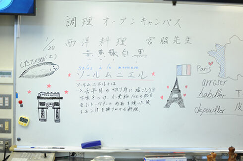 高度調理学科は宮脇シェフのソールムニエル(舌平目のムニエル)。フランス料理としては有名で、聞いたことはあるのではないかと思います。