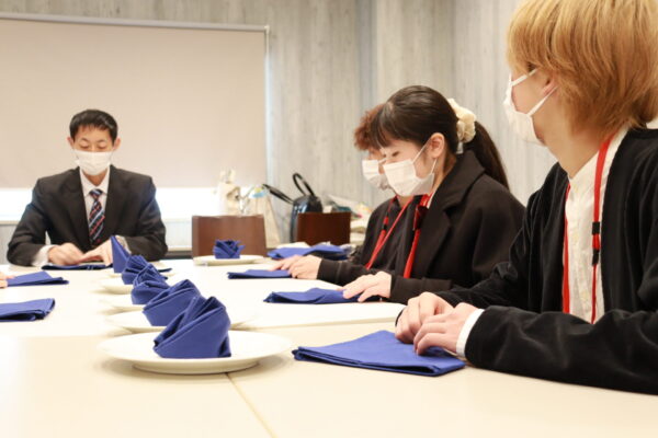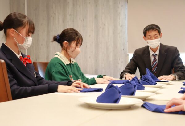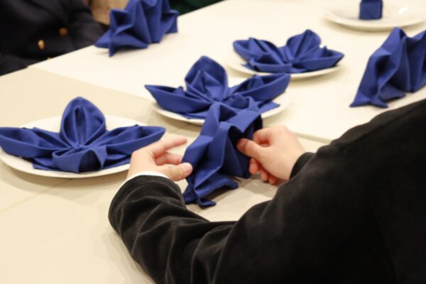 様々な形のナフキンを折り、自分のお気に入りを決めました♪