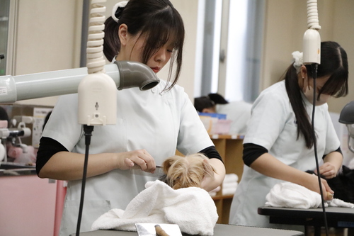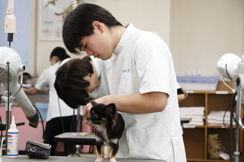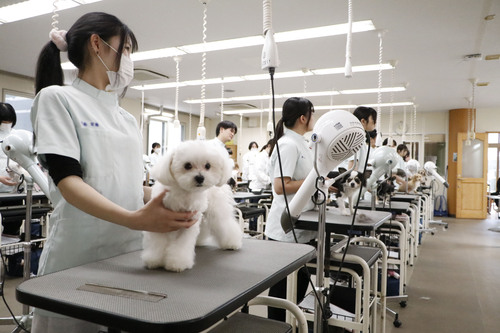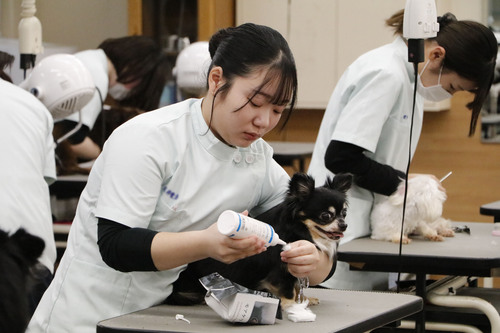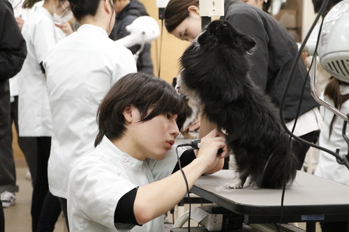 動物健康美容学科の1年生の最後の授業は「AAA認定サロントリマー検定3級*」の実技試験!