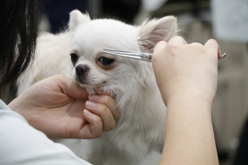 グルーミングの技術だけでなく、犬や道具の取扱いなども審査されます。