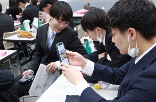 スーツでバシッと決めた学生たちは少し緊張した様子で撮影に臨んでいました。