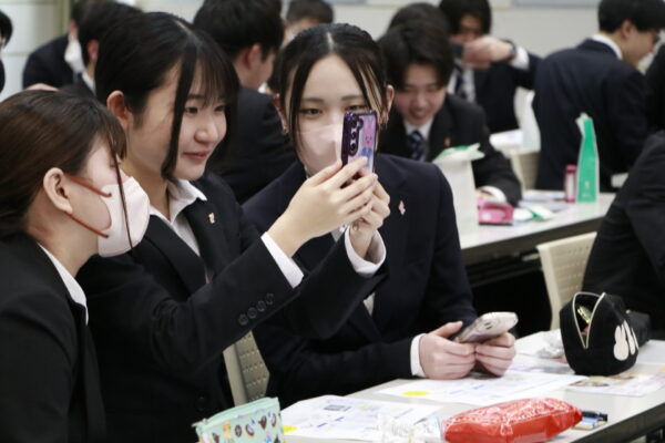 自分の肌年齢が分かるアプリや、眉の書き方実践など、体験型のセミナーで学生は楽しそうに研修を受けていました♪